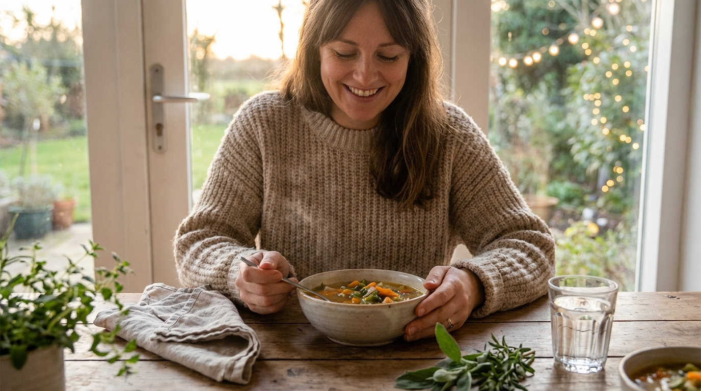 Servir cette soupe tôt le soir, en unique plat, laisse plusieurs heures de « repos digestif ». Le corps gère mieux graisses et sucres pendant la nuit, ce qui soutient l’élimination progressive des kilos.