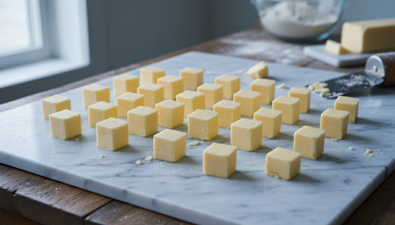 - Couper le beurre en cubes nets pour un pliage plus précis.