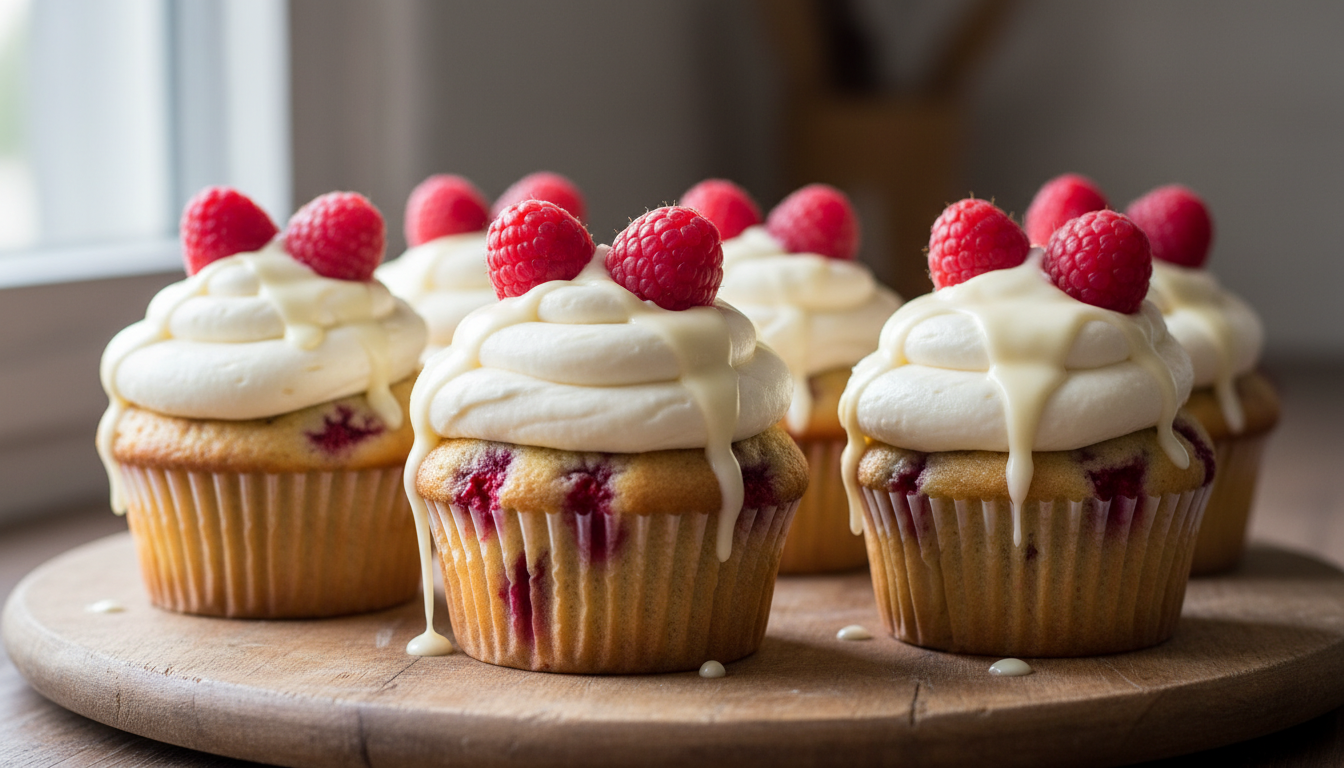 Un parfum de pâtisserie maison plane : ces cupcakes vanille et framboise, moelleux, fruités et richement napés de crème au fromage frais et chocolat blanc, sont la douceur qui éclipse tout dessert classique. Chaque bouchée mélange l’acidité de la framboise à la gourmandise d’un nappage chocolat blanc, sans jamais tomber dans l’excès sucré.