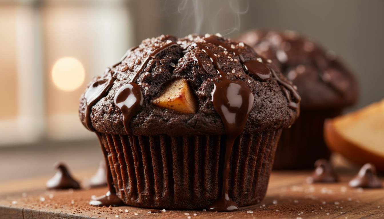 Un muffin poire-chocolat noir maison : moelleux, parfumé et irrésistiblement généreux dès la première bouchée