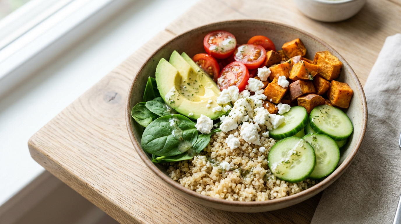 L’essentiel à retenir : ce Buddha bowl au chèvre frais offre un repas complet classé Nutri-Score A. L’alliance du quinoa, des lentilles et du fromage garantit un apport protéique optimal pour une satiété durable. Ce plat holistique, prêt en 45 minutes, représente la solution parfaite pour un déjeuner sain alliant gourmandise et équilibre nutritionnel. Vous cherchez une solution simple pour manger sainement sans passer des heures en cuisine ? Cette buddha bowl chèvre frais recette constitue le repas idéal pour allier équilibre nutritionnel et gourmandise au quotidien. Découvrez comment assembler les meilleurs ingrédients pour créer un plat complet qui booste votre énergie immédiatement. La recette complète du Buddha bowl au chèvre frais Vous ratez quelque chose si vous n’avez pas testé cette combinaison. Voici une buddha bowl chèvre frais recette simple et rapide qui change la donne pour vos déjeuners.