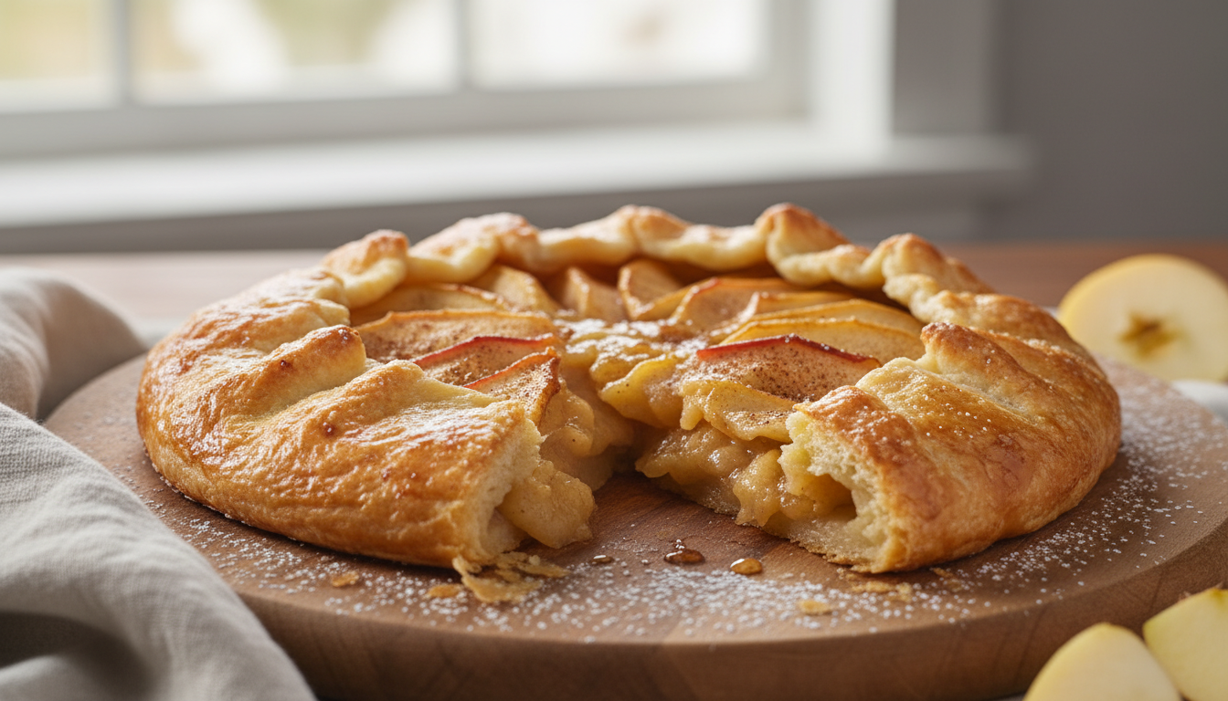 Laissez reposer la galette quelques minutes après la sortie du four. La découpe sera plus nette, et vous profiterez d’un contraste délicieux entre le feuilletage tiède, croustillant et la garniture fondante aux pommes. Pour sublimer cette gourmandise, accompagnez-la d’un thé aux fruits rouges ou d’un cidre doux, qui prolongera l’expérience autour de cette tradition revisitée.